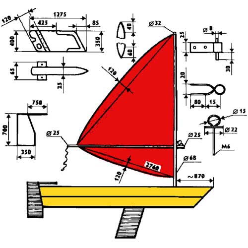 Чертежи и описание для самостоятельного изготовления простой лодки-плоскодонки, для рек и озер, на которой можно ходить под парусом. Автор А.В. Жемерикин, Рязань.
