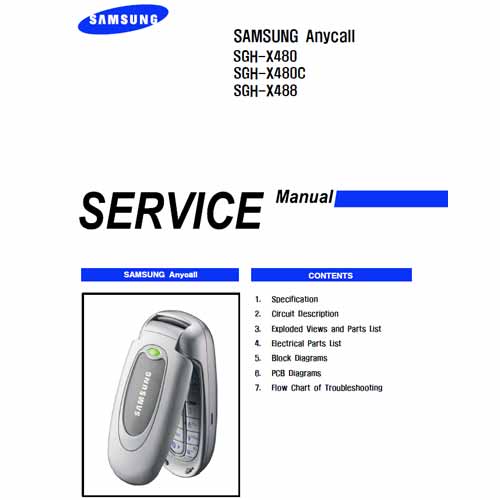 Скачать сервис мануал - Service Manual - на сотовые телефоны Samsung Anycall SGH-X480 / SGH-X480C / SGH-X488. Спецификации, инструкции, разборка, схемы электрические принципиальные.