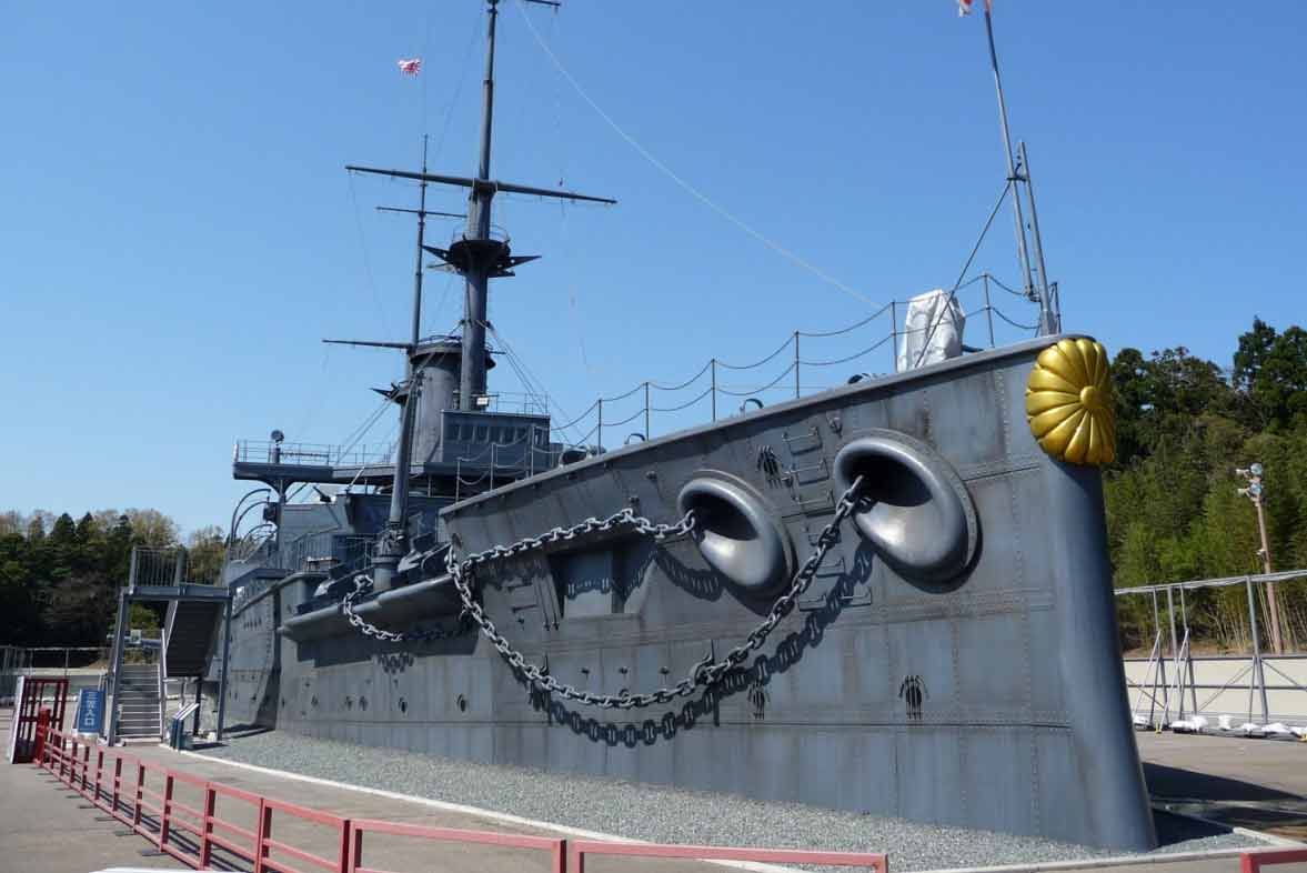 Как показывают фотографии, "Миказа" был довольно тщательно восстановлен. Но орудия и башни, выполненные из стальных листов, при ближайшем рассмотрении не соответствуют действительности.