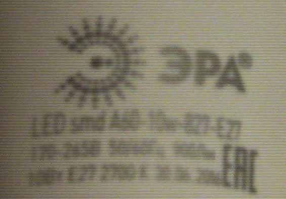 На ней логотип ЭРА. Она на 10W. Ее я тоже покупал примерно за 250 рублей и тоже без гарантии... Лампочка проработала почти полгода, потом в ней сгорел один светодиод и один сегмент потух - разорвалась цепь, и буквально через несколько минут сгорел второй светодиод и лампочка окончательно погасла. То, что сгорели два светодиода я узнал позже, когда разобрал ее и прозвонил мультиметром.