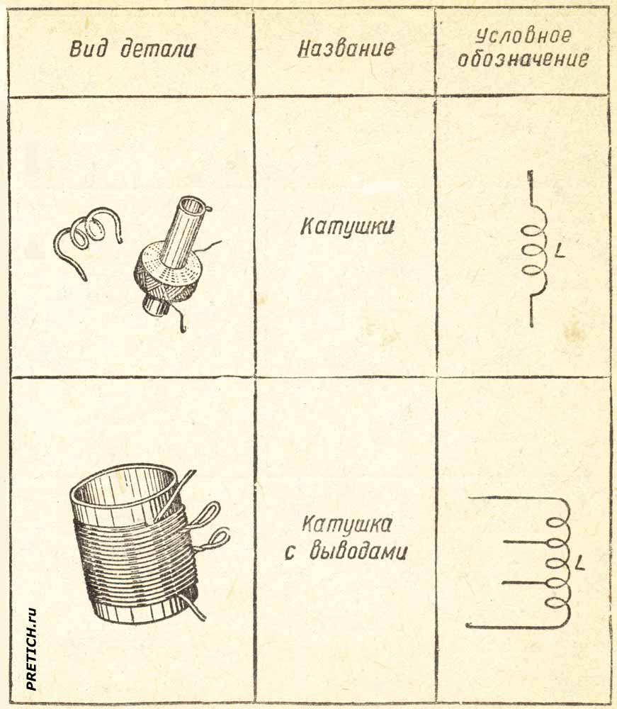 Внешний вид и обозначение на схемах катушек, и катушек с выводами...