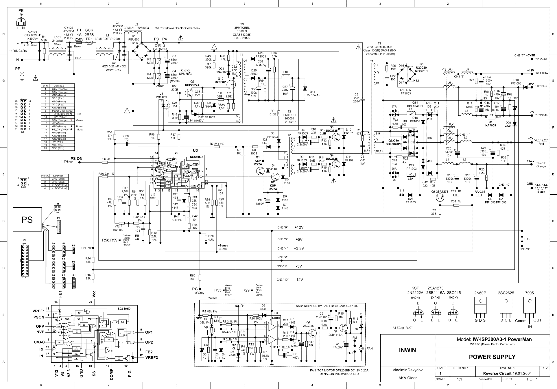 По просьбе одного знакомого выкладываю схему компьютерного блока питания INWIN IW-ISP300A3-1 PowerMan