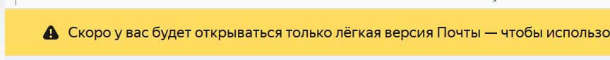 А вот скажите, недавно почта Яндекса начала требовать: Скоро у вас будет открываться только лёгкая версия Почты — чтобы использовать все функции, обновите браузер до последней версии