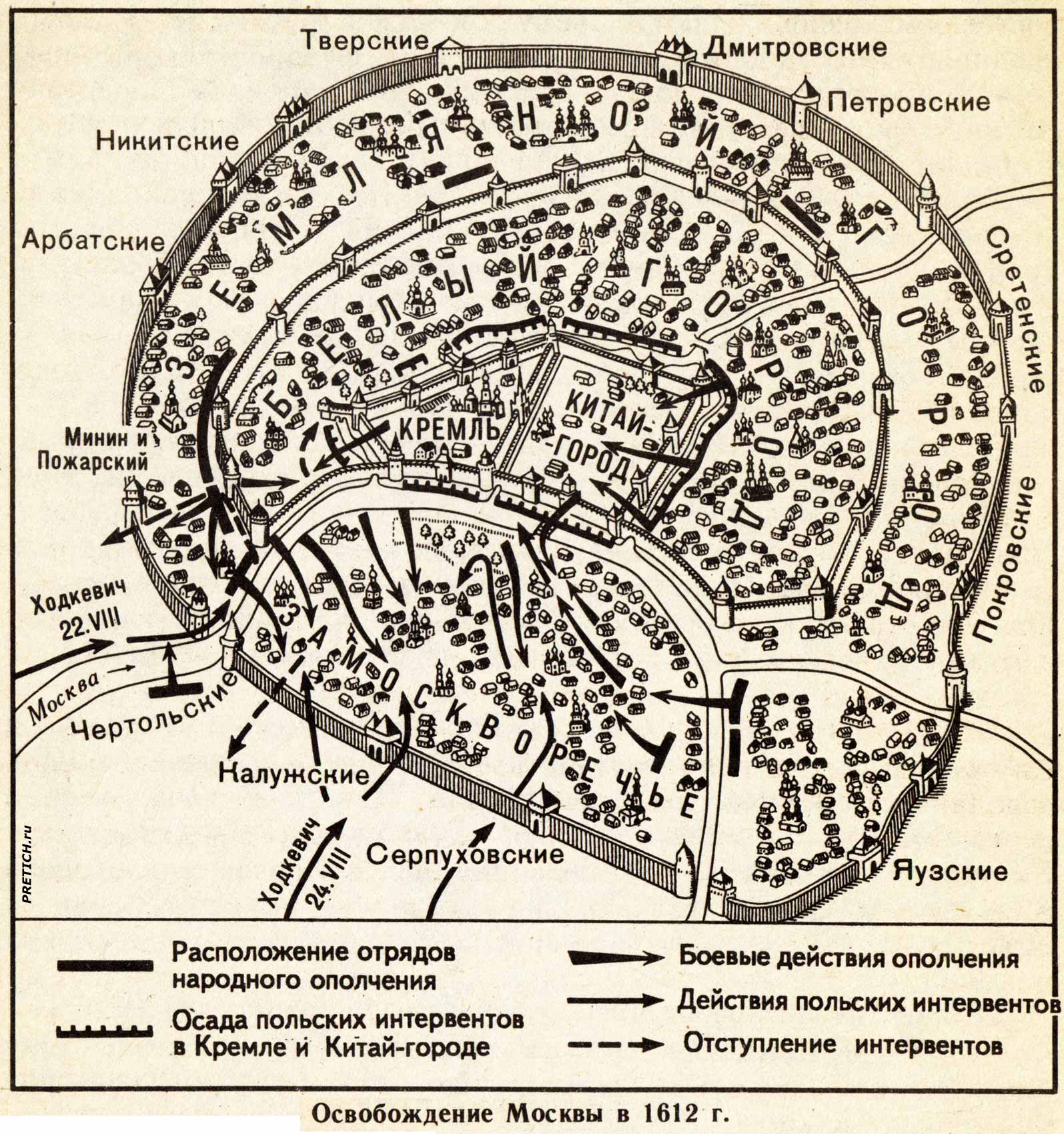Карта: Освобождение Москвы в 1612 году от польских захватчиков.