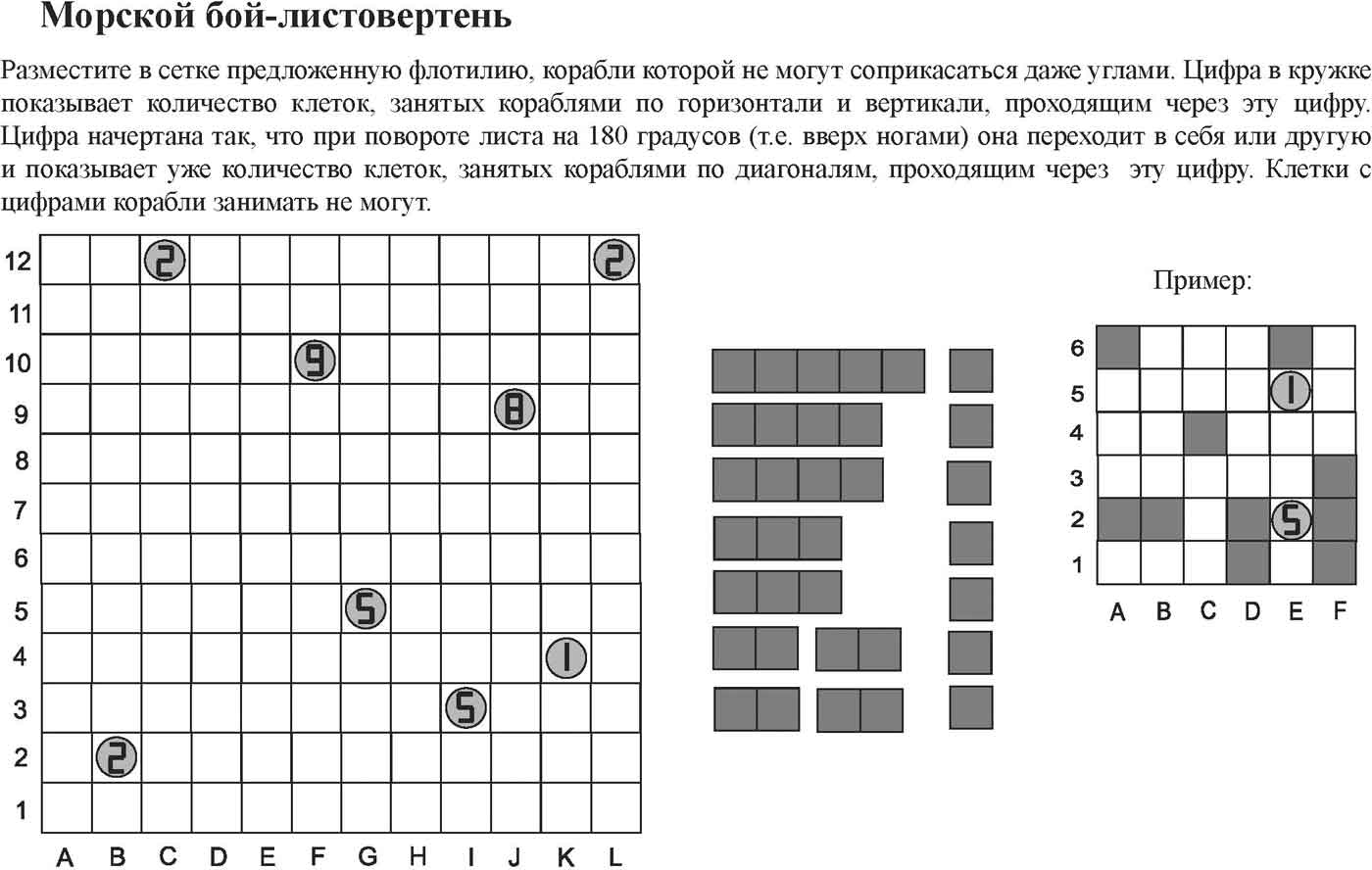 Морской бой-листовертень - головоломка, кроссворд