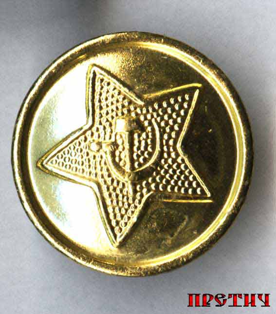 Пуговица пустотелая, так как были еще литые алюминиевые, пришивалась к шинелям, гимнастеркам.