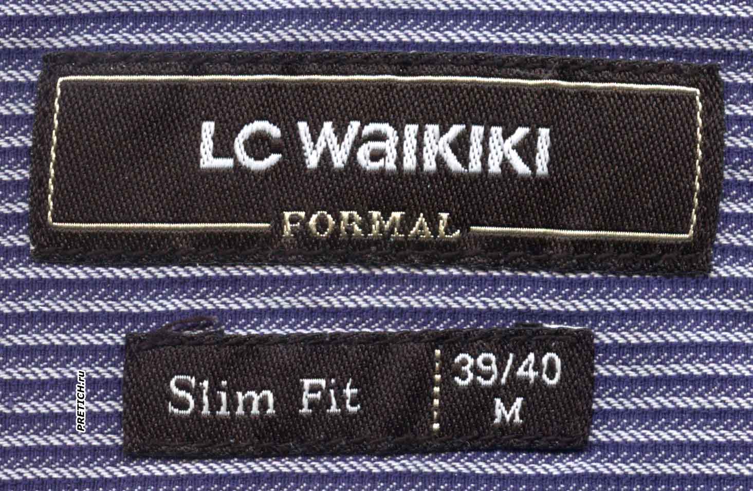 Внутренняя нашивка или этикетка на мужской рубахе LC WAIKIKI FORMAL. И вторая, с размерами: Slim Fit 39/40 M