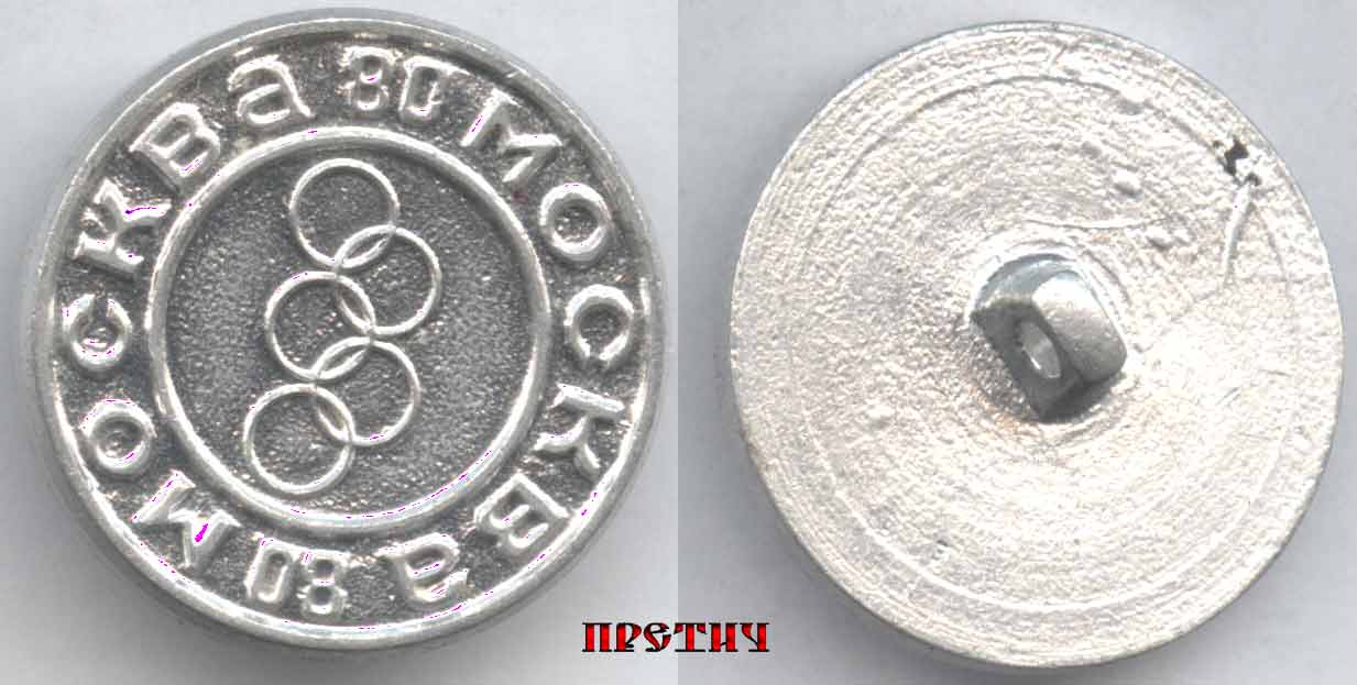 Пуговица с олимпийской символикой Москва 80 и пять колец посередине