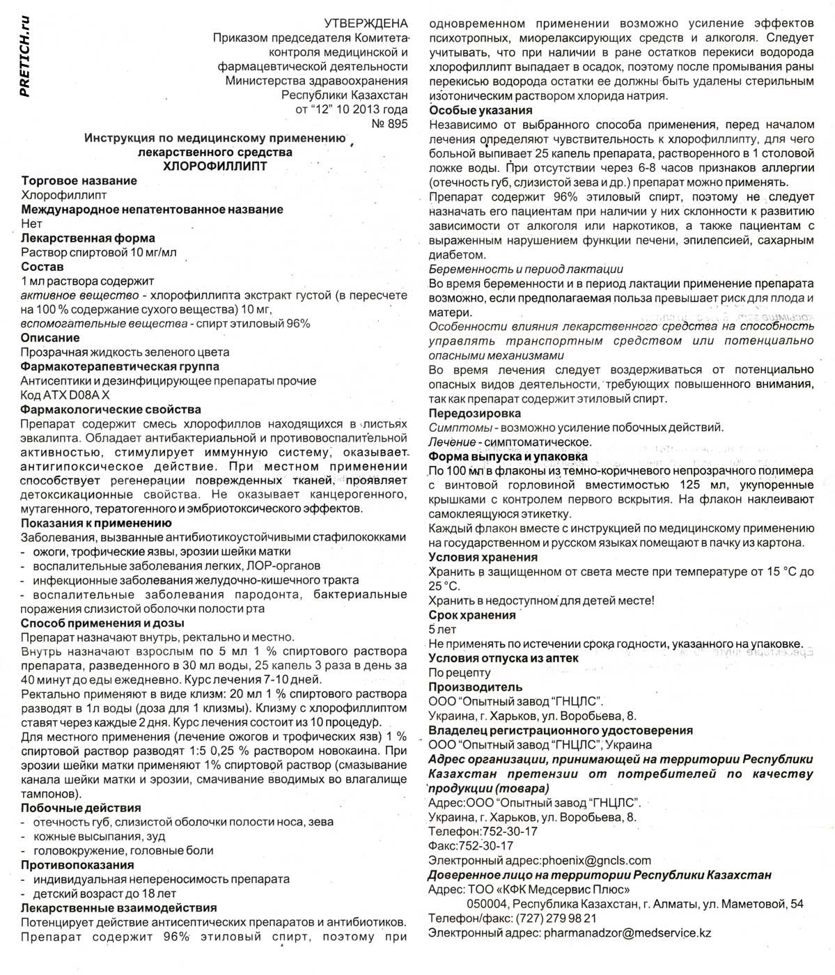 Инструкция по медицинскому применению лекарственного средства Хлорофиллипт, производства ООО Опытный завод ГНЦЛС, Украина, Харьков