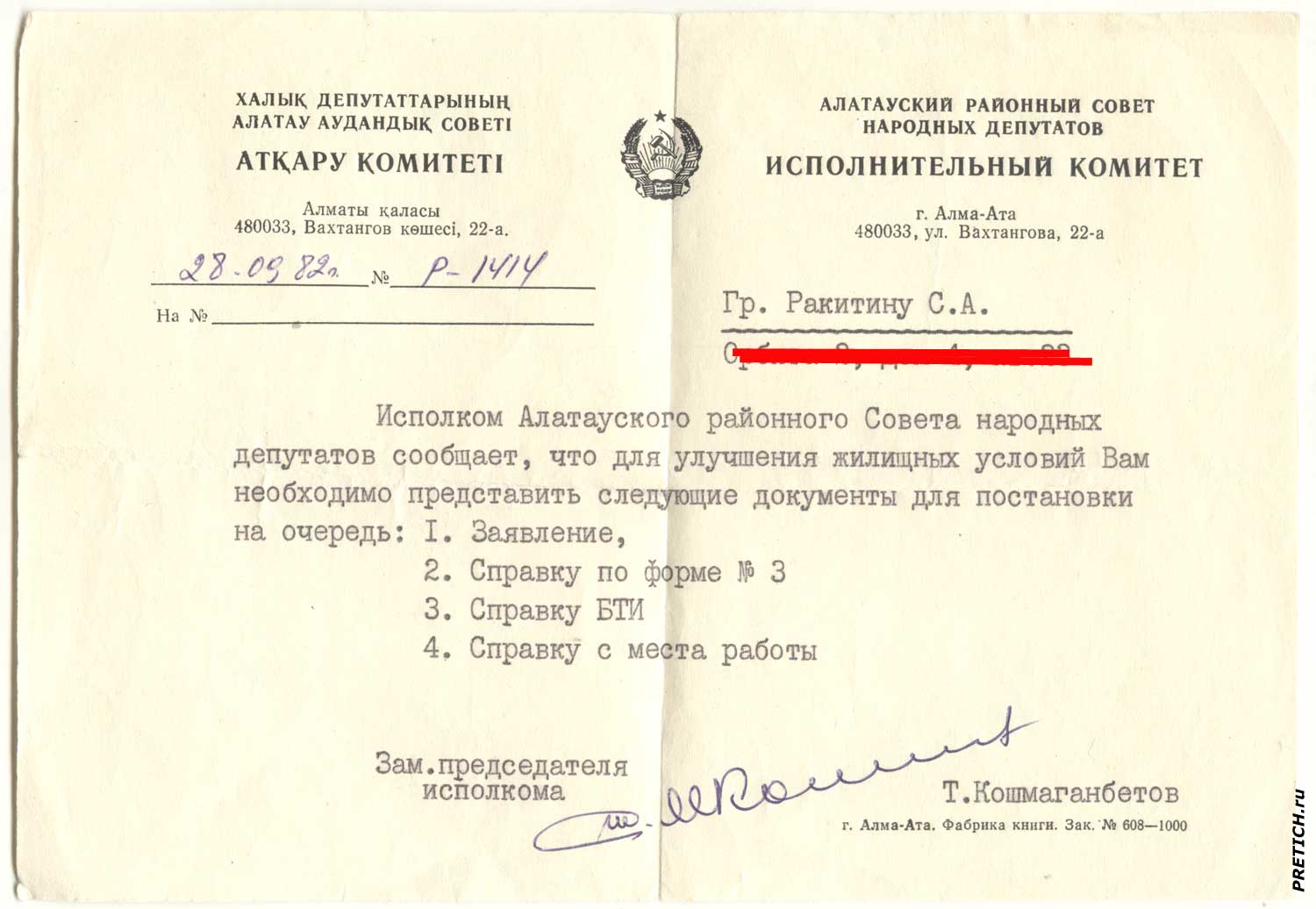 Документ от 28.09.1982 года, в нем указано какие необходимо предоставить документы, для улучшения жилищных условий: