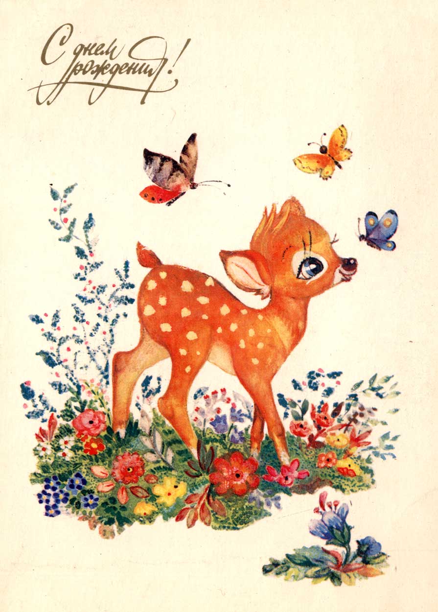 Поздравительная открытка - С Днем рождения! "Изобразительное искусство", Москва, 1984. Тираж 4 900 000 экземпляров. Цена 2 копейки. Почтовая открытка, но без марки. Художник Л. Манилова