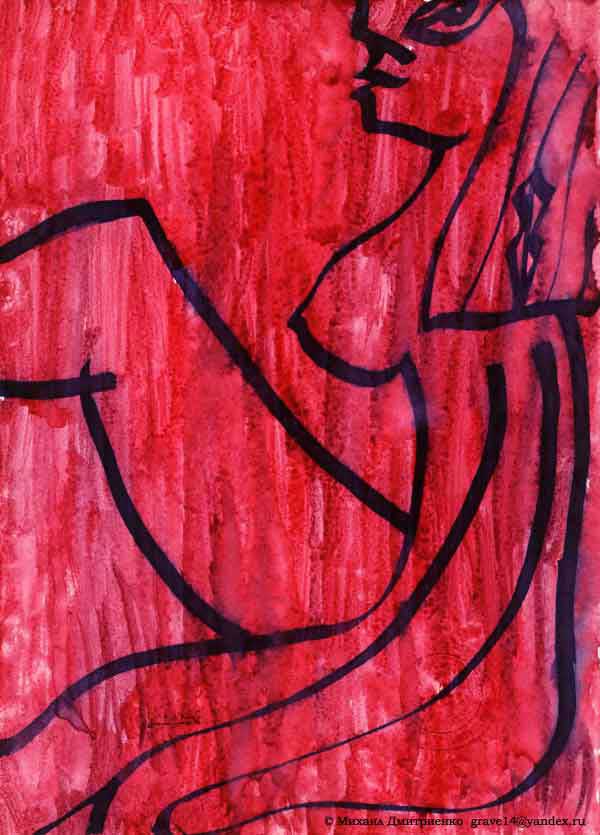 Red Girls - красный рассвет - рисунок Михаила Дмитриенко