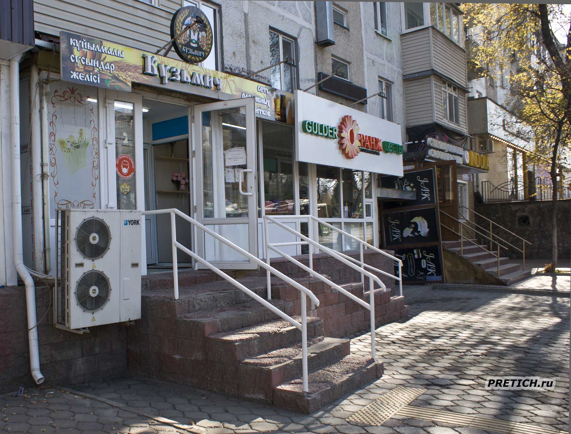 Сеть разливных напитков Кузьмич - Казахстан, Алма-Ата (Алматы), микрорайон Орбита-2, по улице Мустафина... Пивная - именно так это и можно назвать, делит помещение с цветочным магазином Оранж. Далее идет небольшое заведение - Салон красоты INDOLA.