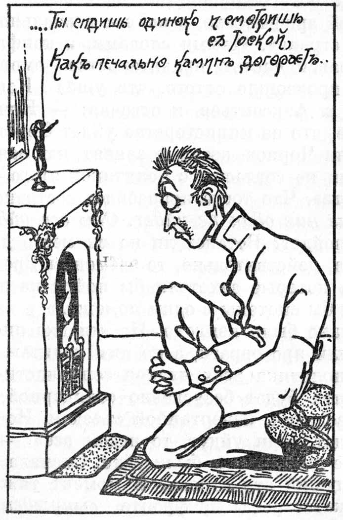 Почтовая открытка "Керенский у камина" (...Ты сидишь одиноко и смотришь с тоской, как печально камин догорает).