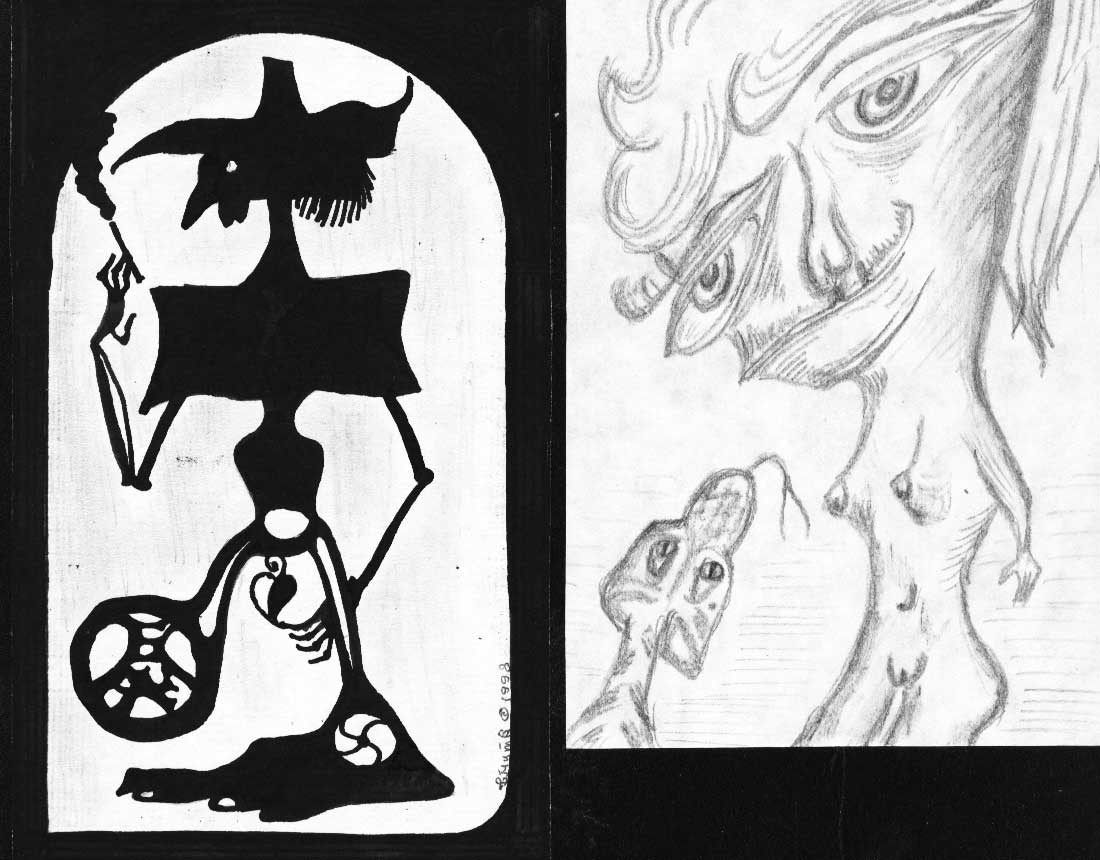 Адам, Ева и Змей искуситель. Рисунок Михаила Дмитриенко, Алма-Ата.