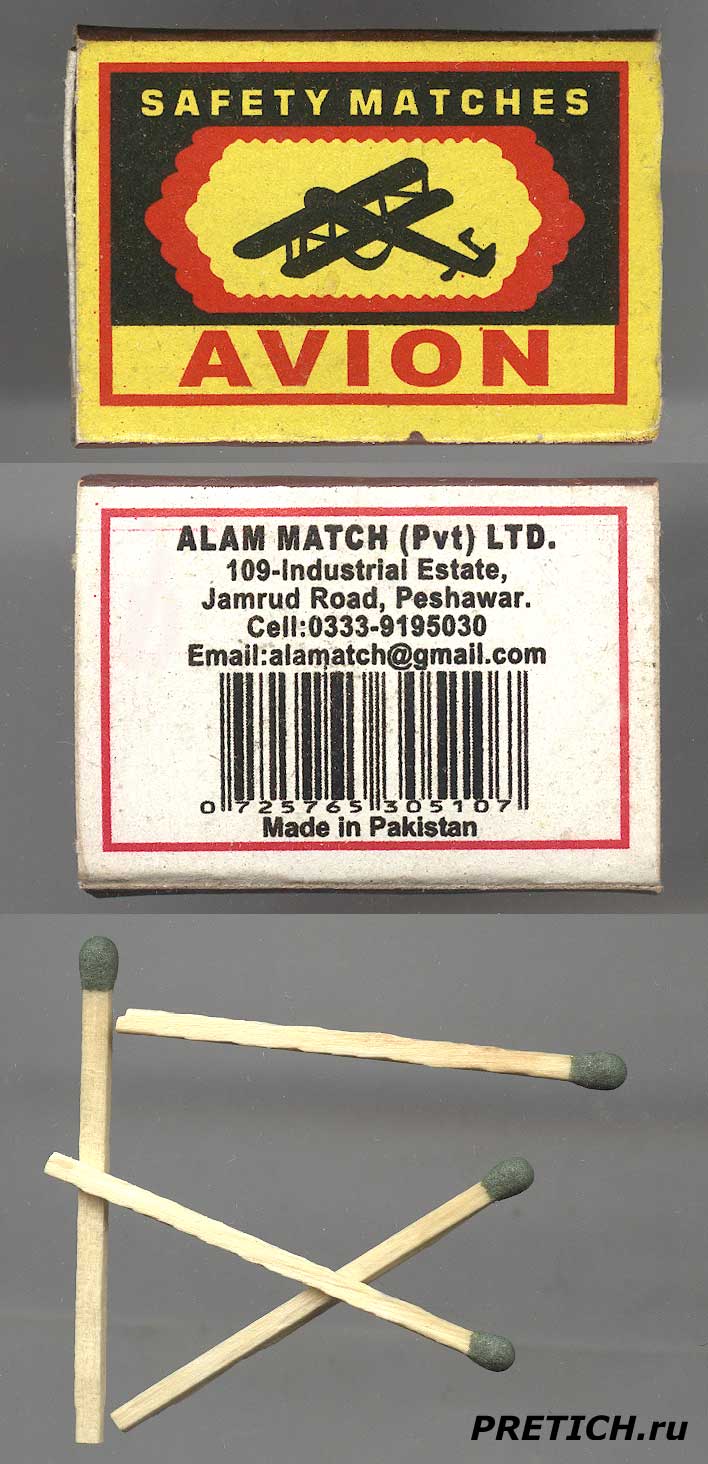 На обратной стороне коробка: ALAM MATCH (Pvt) LTD. 109-Industrial Estate Jamrud Road, Peshawar. Сделано в Пакистане...