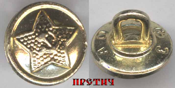 Маленькая солдатская пуговица, алюминиевая, с "желтым" покрытием. На внутренней стороне клеймо - АОЭМФЗ