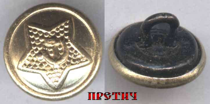 Малая солдатская пуговица, составная - латунная или алюминиевая лицевая сторона, основа и петелька стальные. На оборотной стороне клеймо - буква М, две звездочки и год изготовления - 90