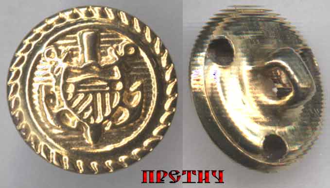 Пуговица с гербом и двумя якорями. Металлическая, из двух частей.
