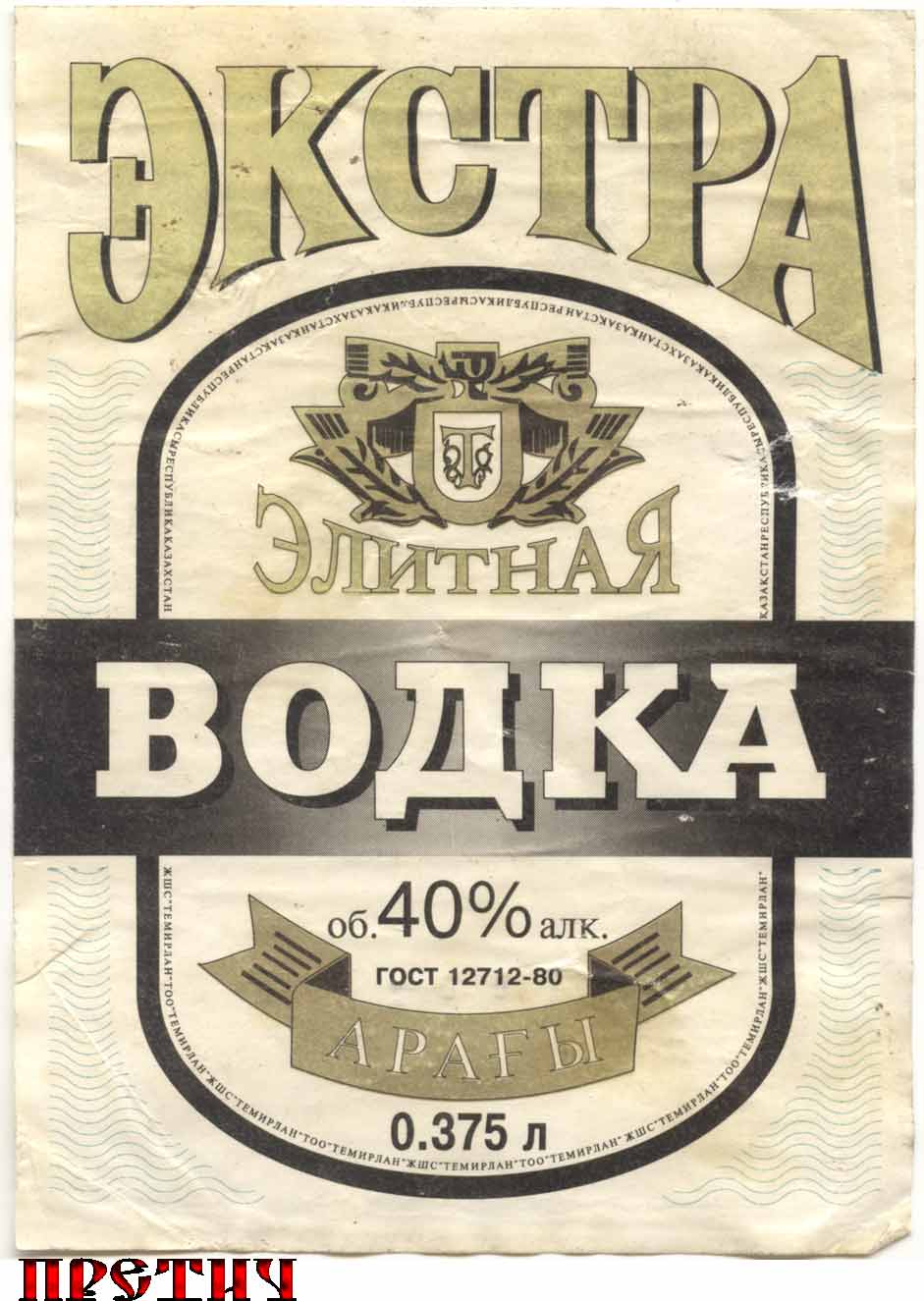 Again, the label is from a newly made vodka from the times of independent Kazakhstan - an imitation of Soviet Extra vodka. The quality was certainly much worse...