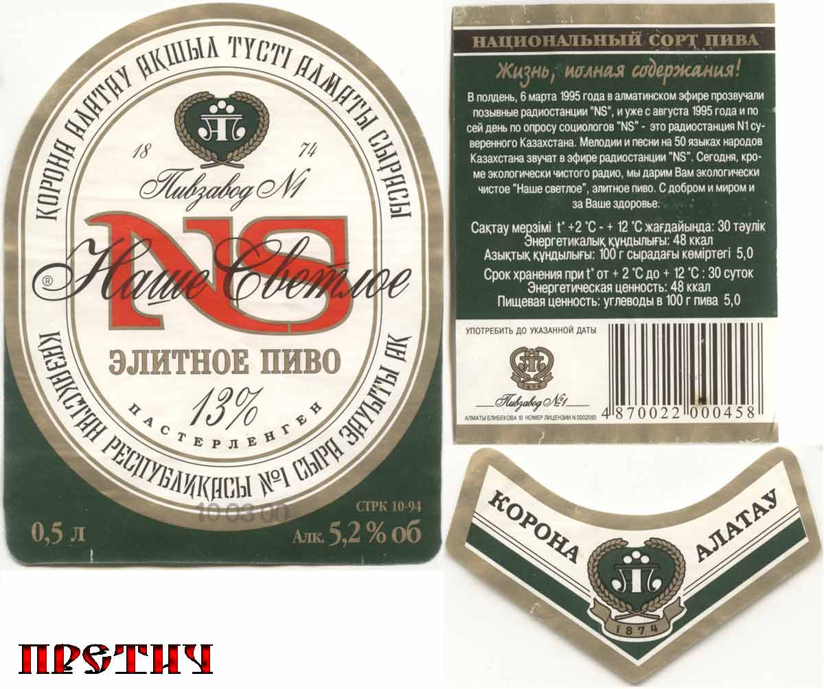 NS элитное пиво 13% Наше светлое, Казахстан