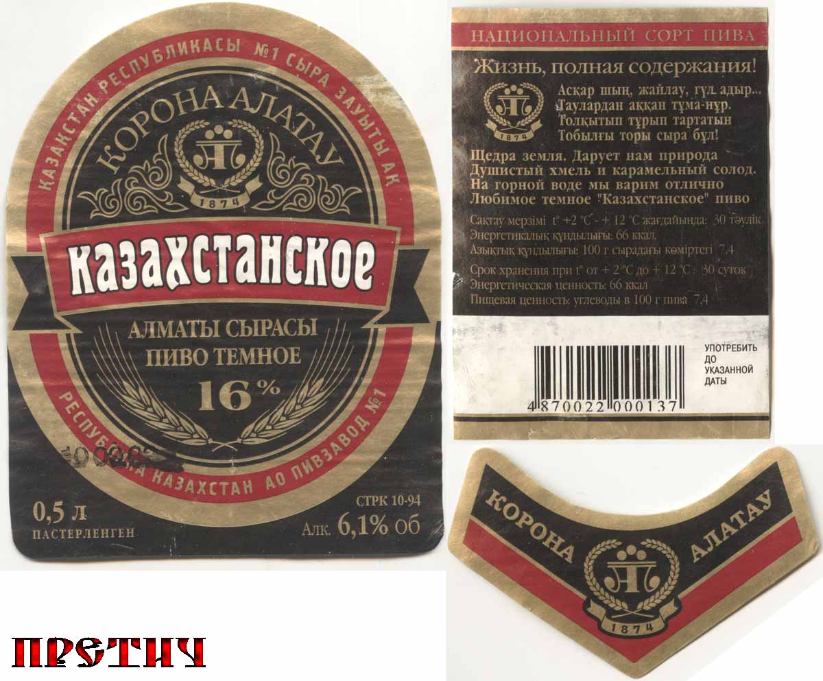 Пиво темное Казахстанское, Корона Алатау, Казахстан