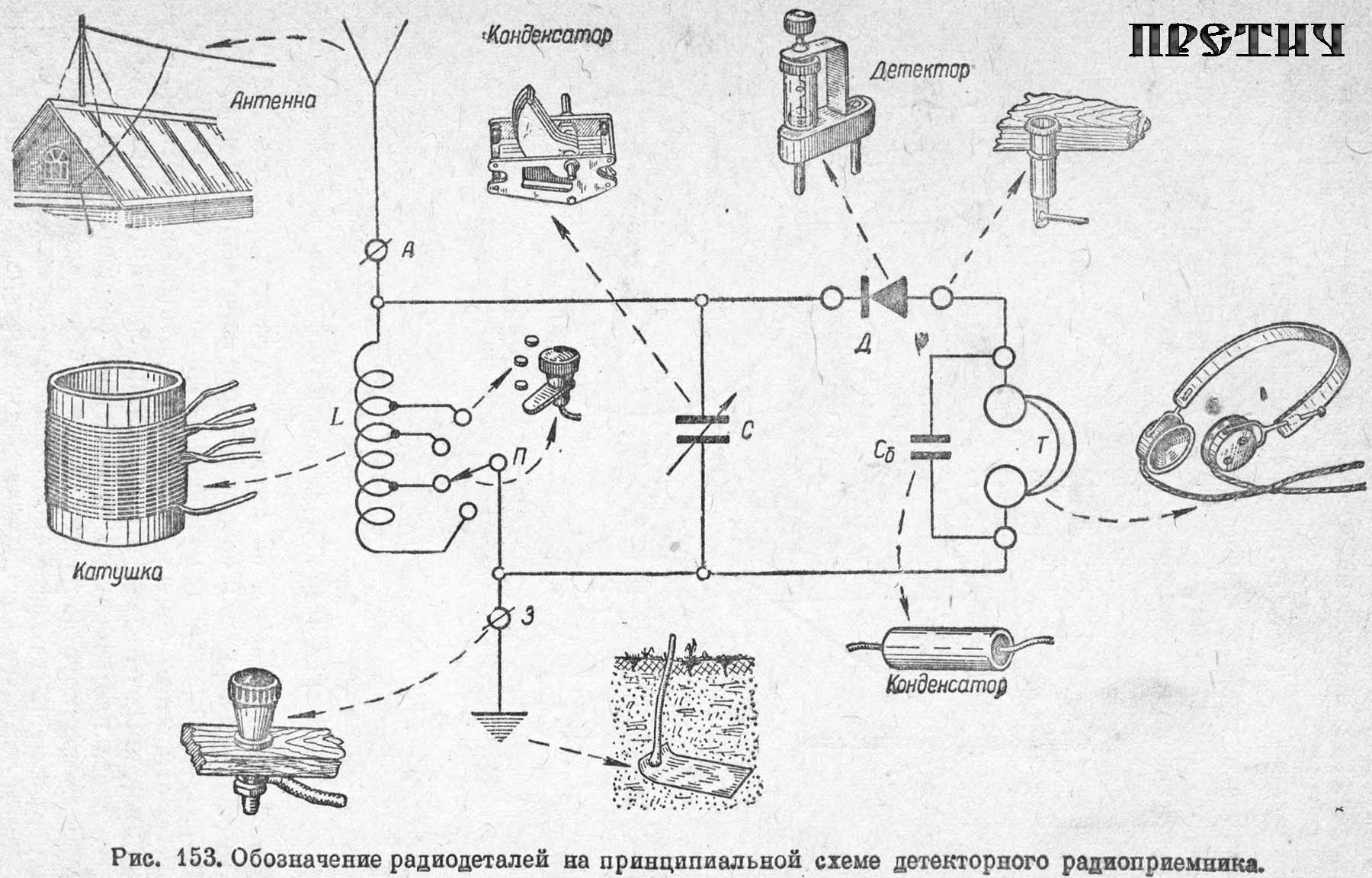Обозначение радиодеталей на принципиальной схеме детекторного радиоприемника