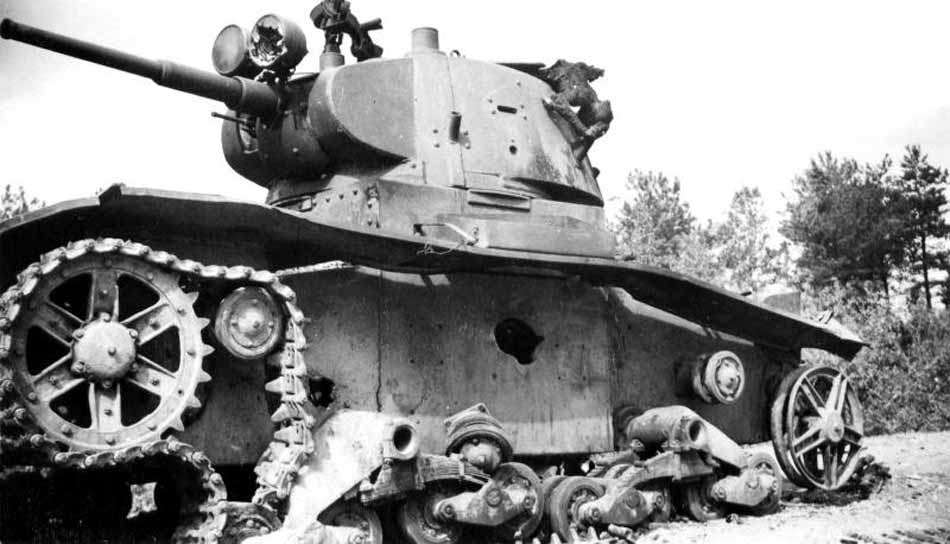 Советский танк полностью разбитый артиллерией немцев, 1941 г.