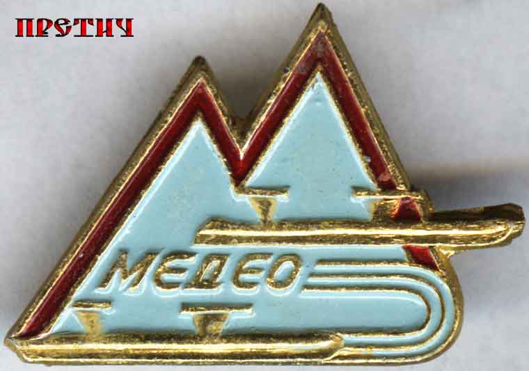 Значок спортивной тематики - Медео. СССР. На значке стилизованные горы и коньки.