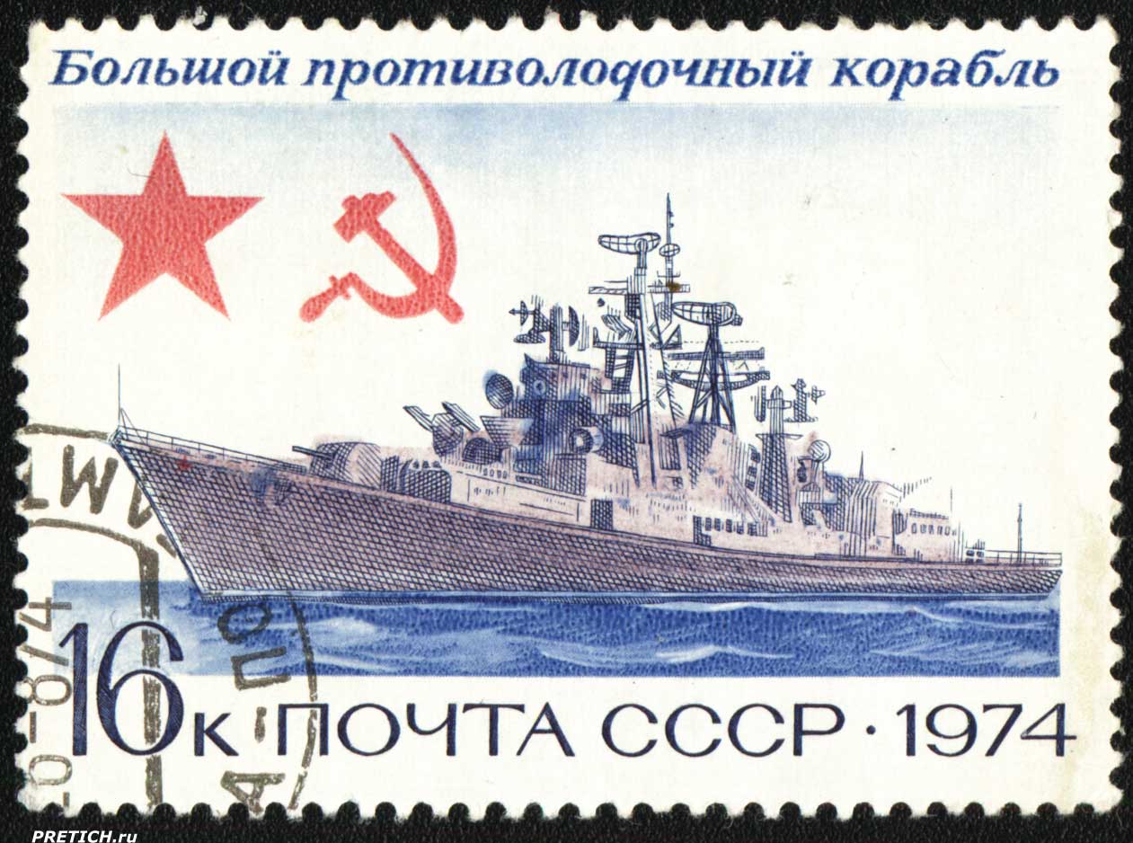 Большой противолодочный корабль. Почта СССР. 1974
