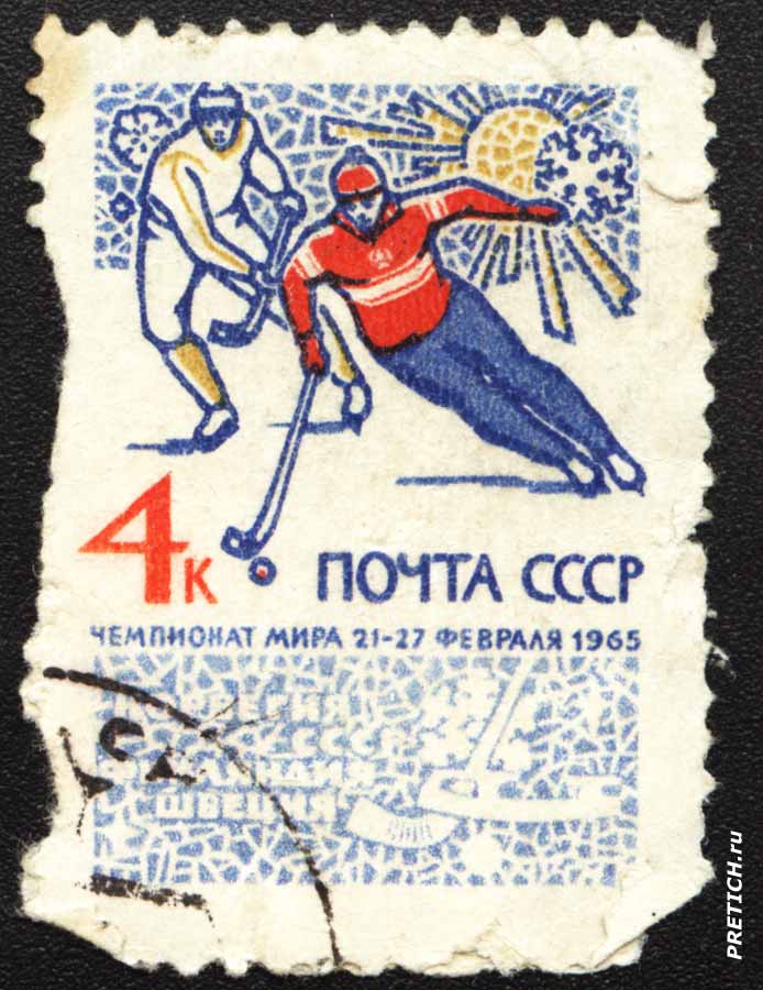 Почтовая марка - Чемпионат мира 21-27 февраля 1965. Почта СССР. 1965. 4 копейки. Серия "Спорт"