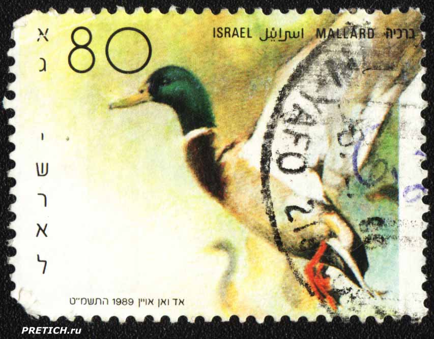Israel Mallard - 1989. Почтовая марка Израиля, серия "Птицы"