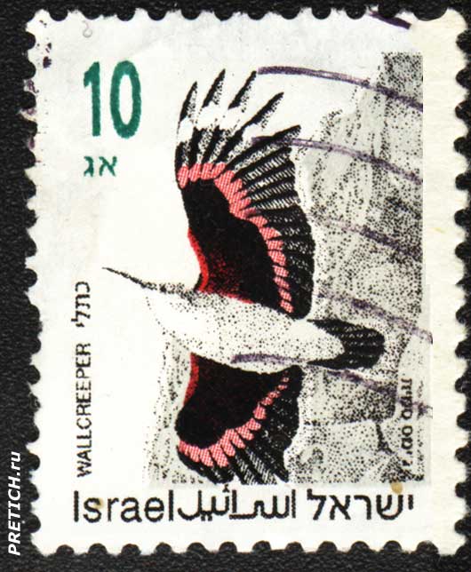 Israel Wallcreeper. Почтовая марка Израиля. Серия "Птицы".
