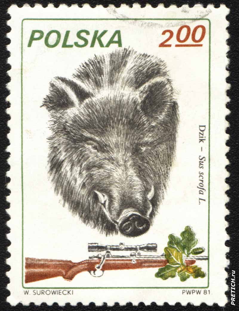 Почтовая марка - Dzik - Sus scrofa L. W. Surowiecki. Почта Polska. 1981