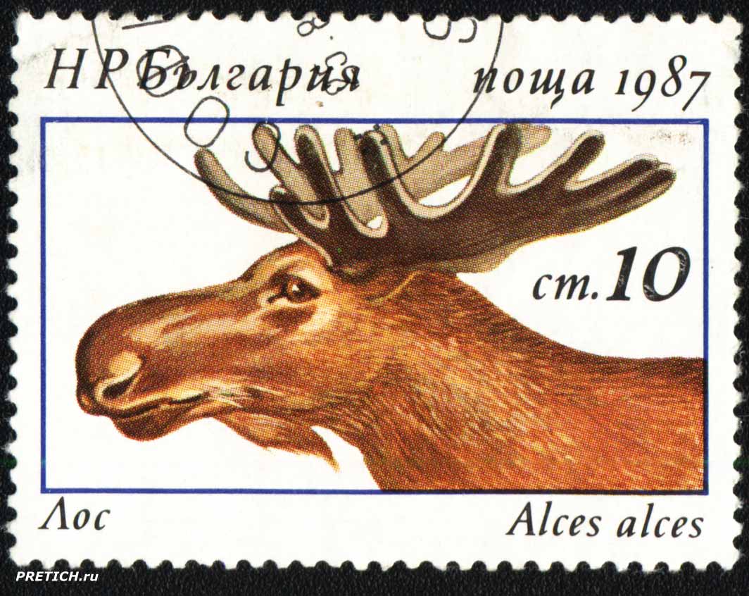 Почтовая марка Болгарии - Лос - Alces alces. НР България поща. 1987