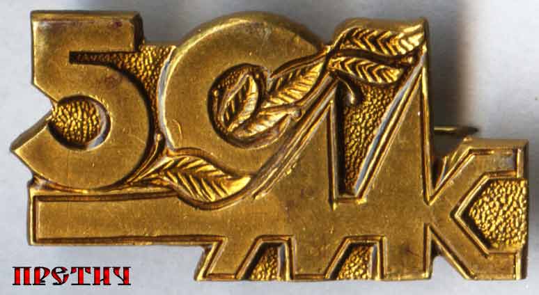 Памятный значок - 50 лет Заводу им. С.М. Кирова в Алма-Ате. Завод основан в 1942 году, значок выпущен в 1991 году к юбилею завода. Об заводе имени Кирова в Алма-Ате читайте здесь: https://wasp.kz/forum/viewthread.php?...ead_id=727
