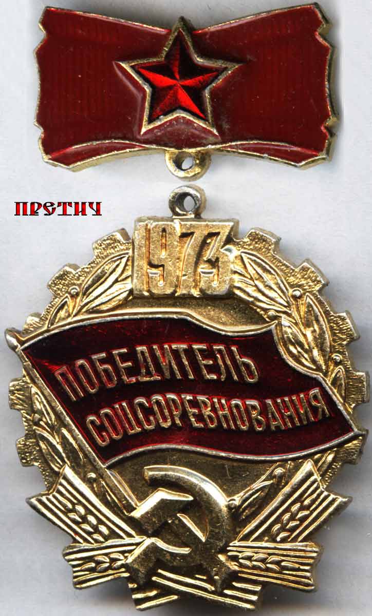Нагрудный знак - Победитель соцсоревнования 1973, СССР. Учрежден постановлением ЦК КПСС, Совмина СССР, ВЦСПС, ЦК ВЛКСМ от 05.01.1973 N 15 "О развертывании Всесоюзного социалистического соревнования работников промышленности, строительства и транспорта за досрочное выполнение народнохозяйственного плана на 1973 год".