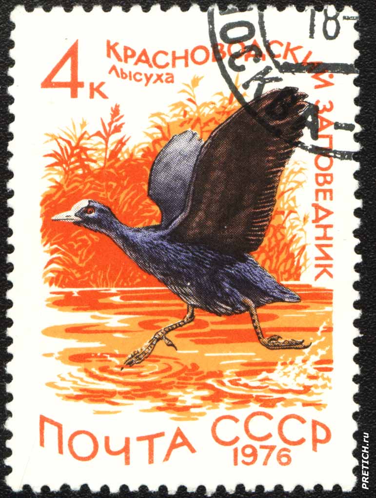 Почтовая марка: Лысуха. Красноводский заповедник. 1976. Почта СССР. Серия "Фауна"