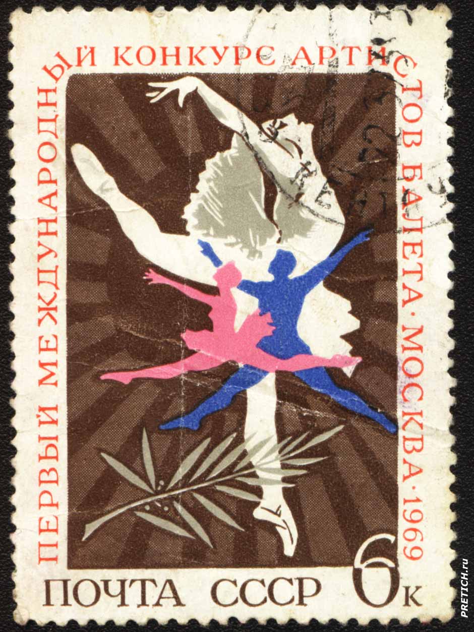 Почтовая марка: Первый международный конкурс артистов балета - Москва. 1969. Почта СССР.