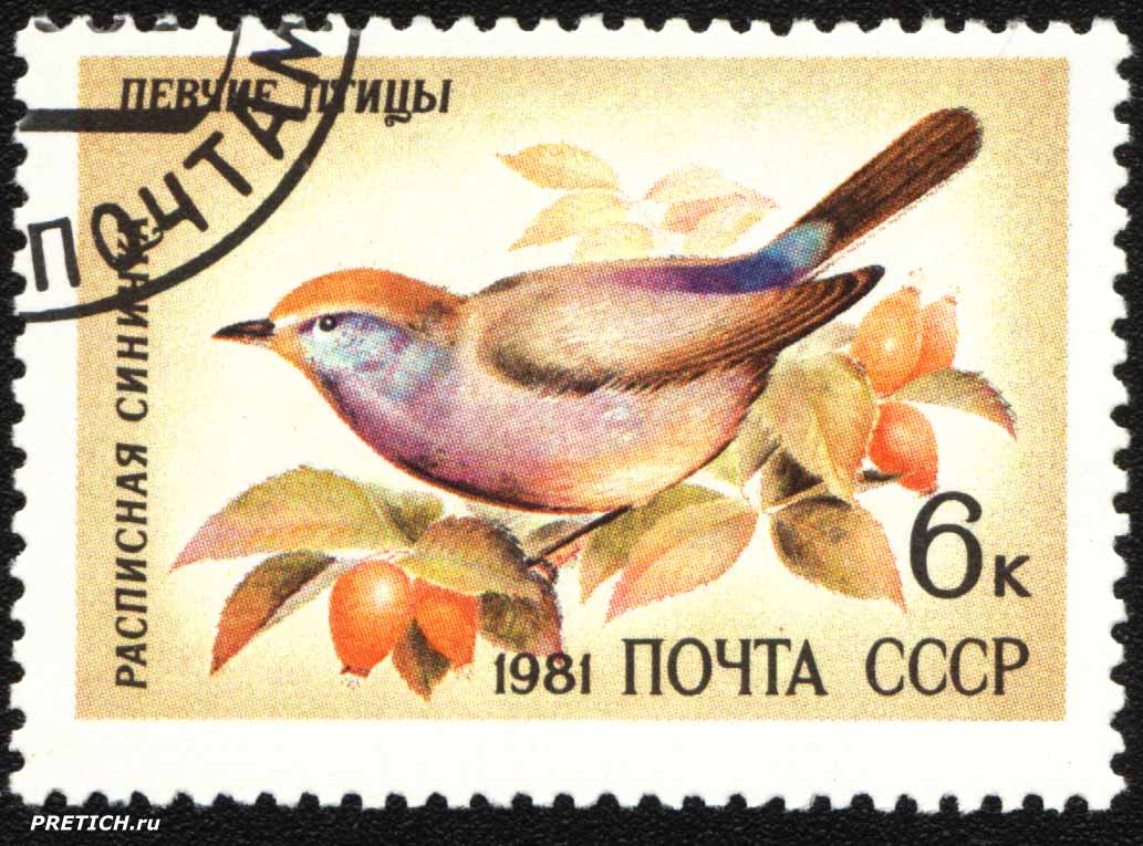 Почтовая марка: Расписная синичка. Певчие птицы. 1981. Почта СССР. Серия "Фауна"