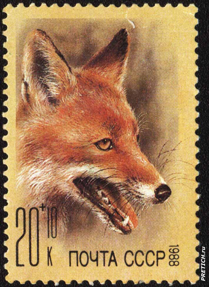 Почтовая марка: Лиса. 1988. Почта СССР. Серия "Фауна"