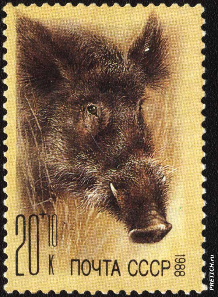 Почтовая марка: Кабан. 1988. Почта СССР. Серия "Фауна"