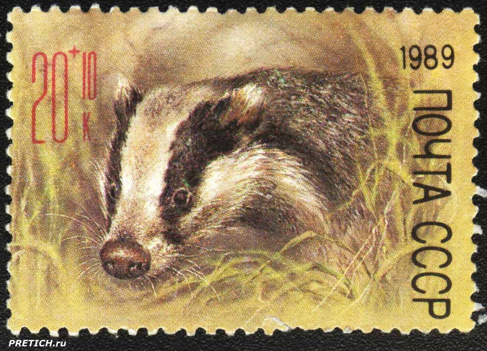 Почтовая марка: Барсук. 1989. Почта СССР. Серия "Фауна"