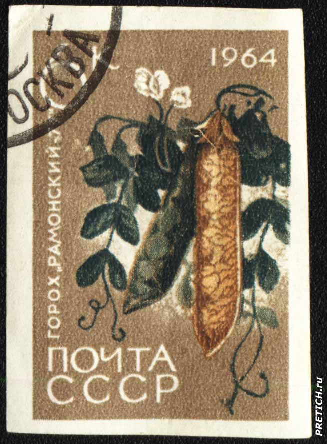 Почтовая марка: Горох "Рамонский-7". 1964. Почта СССР. Серия "Флора". Беззубцовая марка.