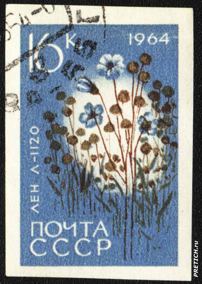Почтовая марка: Лен Л-1120. 1964. Почта СССР. Серия "Флора". Беззубцовая марка.