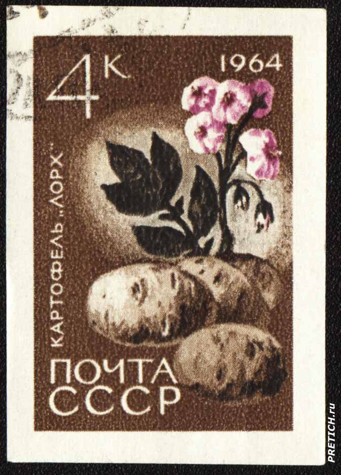 Почтовая марка: Картофель "Лорх". 1964. Почта СССР. Серия "Флора". Беззубцовая марка.