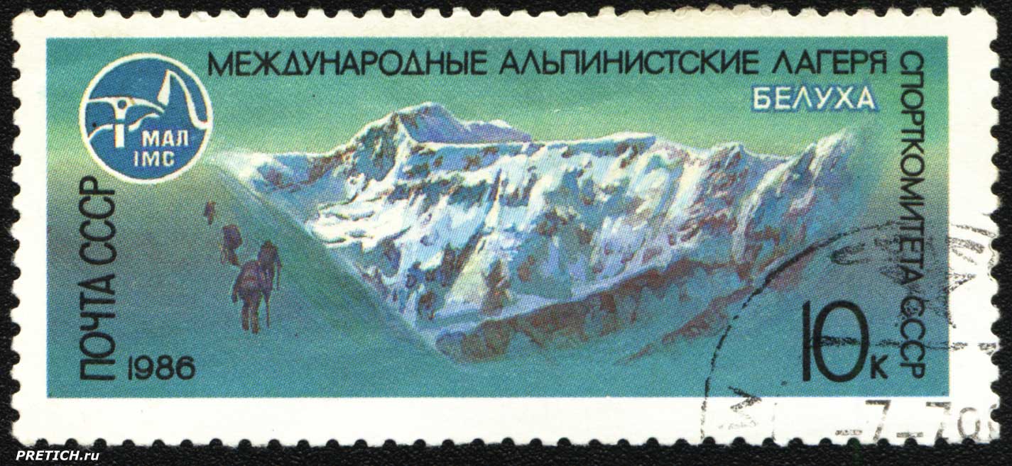 Почтовая марка: Белуха. Международные альпинистские лагеря Спорткомитета СССР. МАЛ-IMC. 1986. Почта СССР.