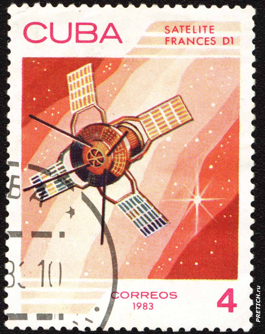 Почтовая марка Кубы: Satelite Frances D1. 1983. Cuba Correos.