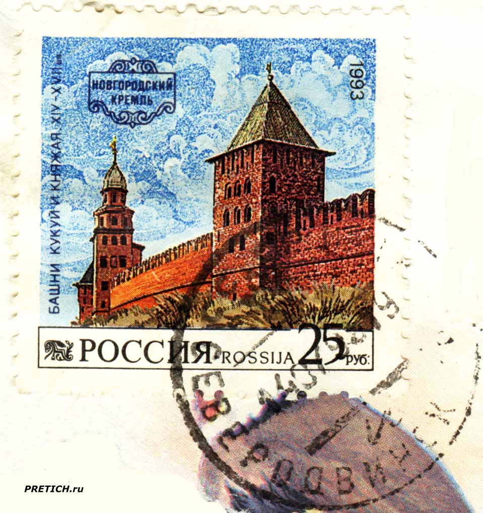 Почтовая марка России: Башни Кукуй и Княжная XIV-XVII вв. Новгородский кремль. 1993. Россия - Rossija.