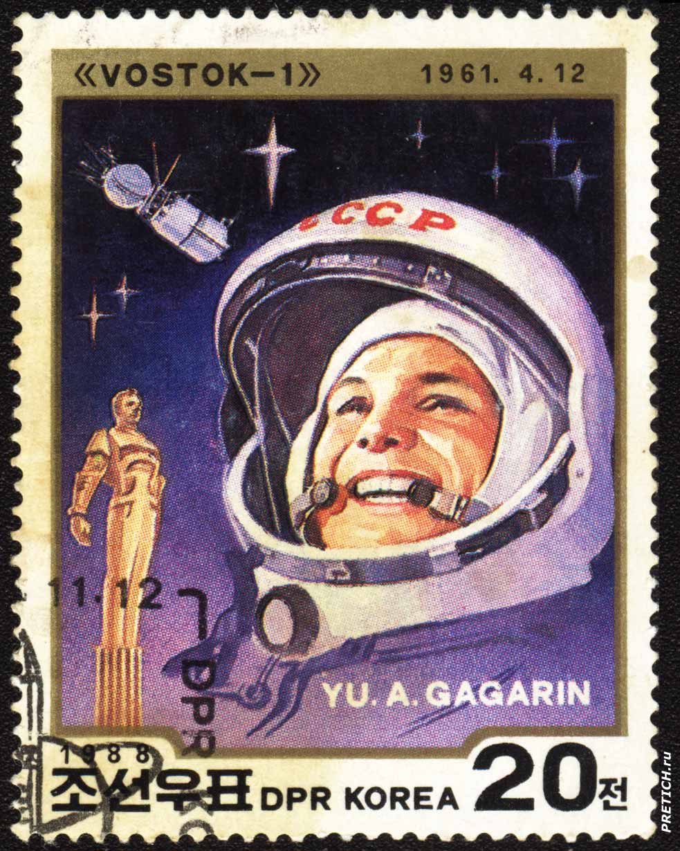 Почтовая марка КНДР - Северной Кореи: Vostok-1 1961.4.12. Yu. A. Gagarin. 1988. DPR Korea